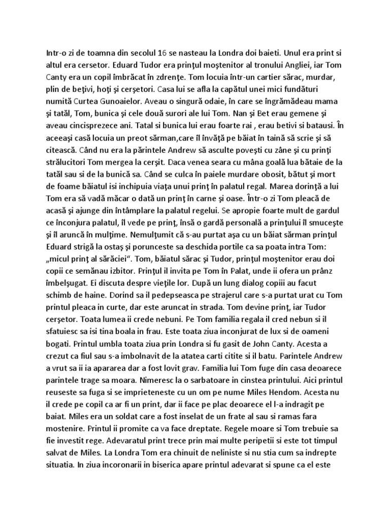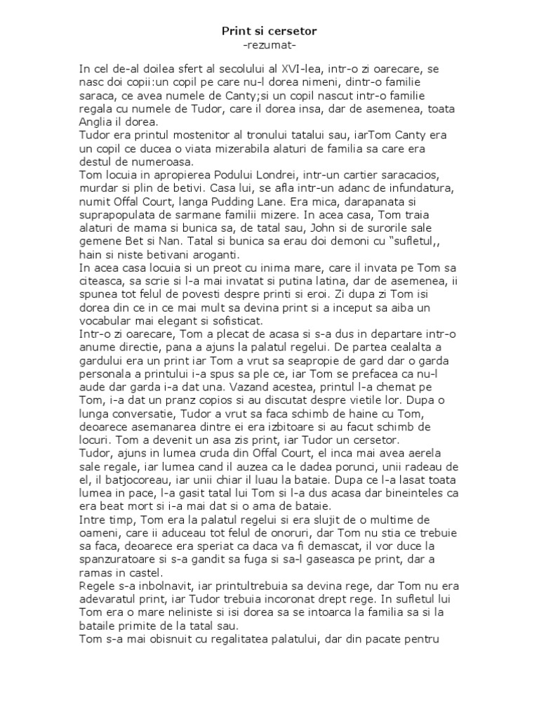 Savesave print si cersetor, rezumat for later. Print si cersetor ( povesti vinil audio). Este o povestire pe scurt! Download & view print si cersetor, rezumat as pdf for free. Acolo locuia unul dintre personajele noastre tom canty, care, la un moment dta ajunge regele engliterei.